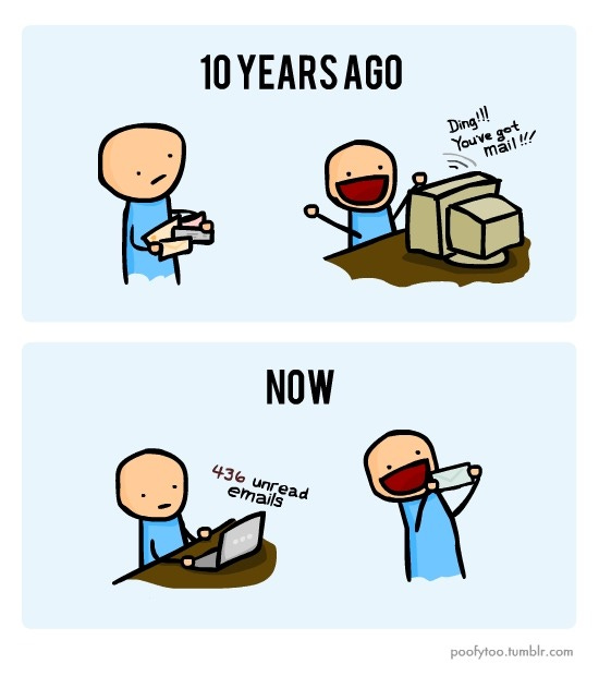 It didn’t start that way. I’m sure you’ve seen the cartoon about how exciting email used to be: