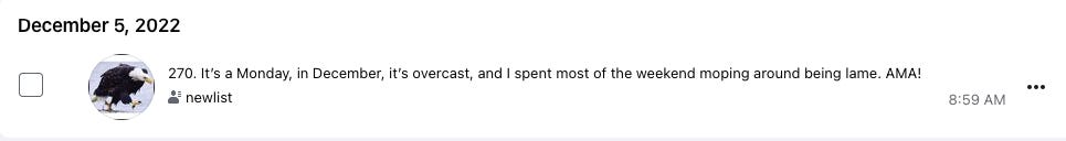 Now that I am not working at a job that has a high email volume, I don’t even have the inbox excuse (or nine-meeting days, which can be a similar distraction) to prevent me from doing my real work. I’m using my Pomodoro timer right now of course, to get this newsletter published. Of course, I have to remember to use it instead of just sitting around drinking coffee and scrolling Threads or reading other people’s Substacks. But once I do, I’m usually in great shape.